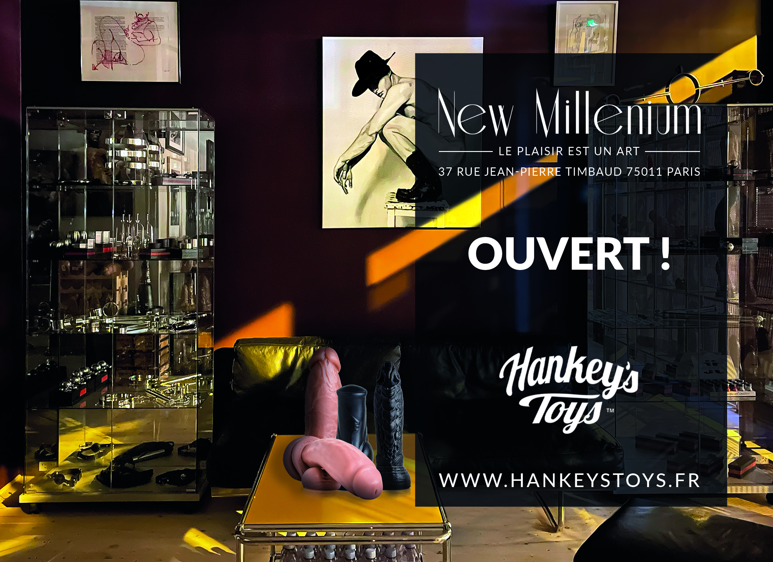 New Millenium est mort, vive New Millenium. Nous vous en avions parlé dans les précédents numéros de AgendaQ, le 37 rue Jean-Pierre Timbaud dans le 11e arrondissement (Paris) s’est fait une beauté et se consacre désormais à présenter la plus grande collection de Hankey’s Toys. En ouvrant ce flagship à Paris, la marque américaine spécialisée dans les godes vous invite à explorer son monde façonné par savoir-faire artisanal, une qualité irréprochable, des matières nobles, et une proposition allant des modèles réalistiques aux plus fantaisistes. Du débutant au véritable trou, tout le monde y trouvera son compte parmi plus de 500 références. Pour vous donner envie de tous les essayer, des vitrines, tout en transparence, ont été agencées pour permettre de découvrir les différentes formes et les centaines de pièces « grands formats » qui sont la spécificité de Hankey’s Toy. Bienvenue dans le temple parisien des adeptes du travail du cul ! www.newmillenium.fr.