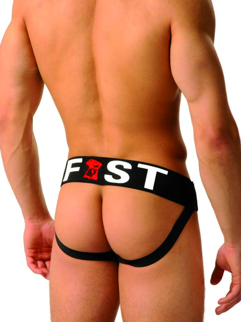 Jockstrap de haute qualité avec logo Fist estampé en caoutchouc à l'avant et à l'arrière. Confortable et solide, ce jock est conçu pour durer. La ceinture tissée élastique de 65 mm de large, les sangles de jambe élastiques et la pochette sur mesure garantissent un confort et un soutien maximum. Small, Medium, Large, Xlarge. 18,50€.