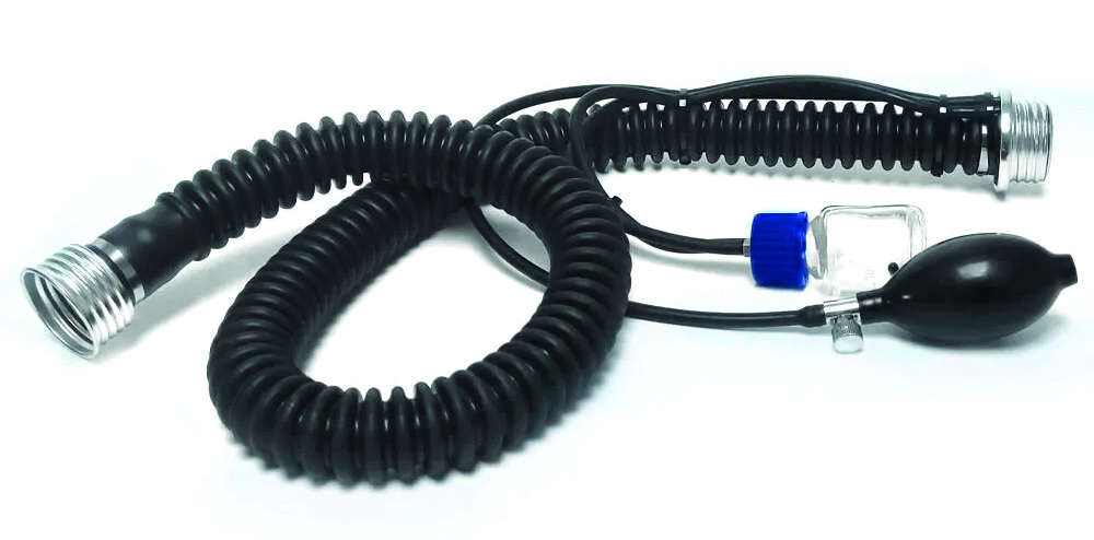 Accessoire pratique qui se branche sur un masque à gaz avec connectique standard, la pompe offre la possibilité de doser le popper’s ou l’arôme grâce à la pompe intégrée.