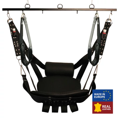 Ce sling en cuir véritable Made in Europe est doté de coussins pour la tête, le dos et les reins. Il dispose également de supports pour les pieds et d’emplacements pour deux fioles de leather cleaner. Un confort total pour des sessions de sexe intense toujours plus longues ! 639,90€