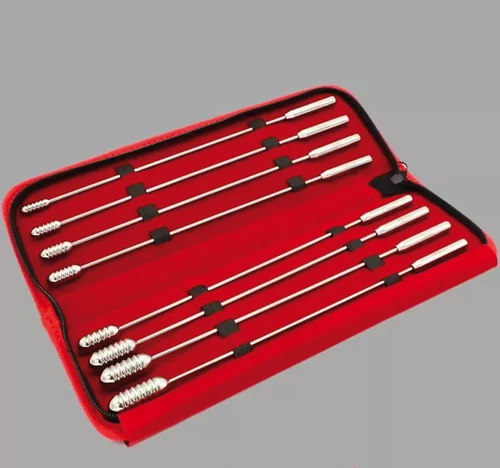 Le set Urethral Sounding de Dr. Sado est un ensemble de huit dilatateurs soigneusement fabriqués pour tous ceux qui souhaitent explorer le domaine fascinant de la stimulation urétrale. Fabriqué en acier inox chirurgical, ce set offre une manière précise, hygiénique et excitante d'intensifier l'expérience de la masturbation. 89,90€.