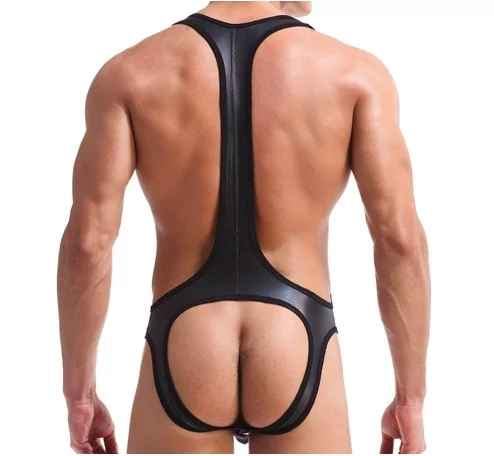 Échancré et ouvert côté pile, ce singlet en tissu imitation cuir avec la partie avant en tulle fine est l’atout de dévoiler qu’en partie pour attiser l’envie et faire de vous un appât de 1er choix.