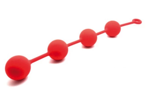 Quatre boules en silicone rouge, de quoi découvrir de nouvelle sensation anale.  Chaque boule d’un diamètre de 20, 30, 40, 50 ou 60 mm sur une longueur de 405mm, distance entre les boules : 80mm. Moulage en une seule pièce, avec anneau en bout pour ne pas le perdre ! Conçu pour les trous affamés. De 19,90€ à 49,90€.