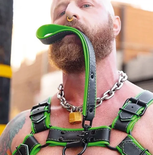 La laisse courte Hardline apporte un nouveau look à l'arsenal Mr. S Leather : des coutures audacieuses, un fermoir en métal mat noir élégant et du cuir robuste passepoilé d'une touche de couleur. Idéal pour garder votre sub, Pup ou chien de secours à portée de main. Matche parfaitement avec le collier Hardline assorti. Longueur totale de 38 cm. Manche en cuir de 30,5 cm. 6 coloris. 64€.