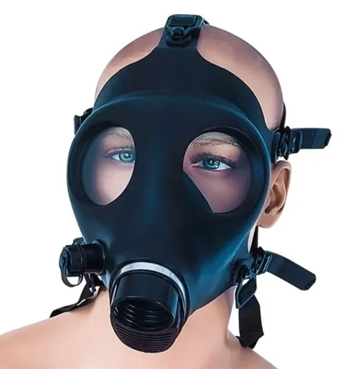 Un tout nouveau masque à gaz fétiche inutilisé qui vous donne un look « extraterrestre » sexy et anonyme. Idéal pour le fétichisme du caoutchouc et le jeu de contrôle de la respiration. Ce masque est établi à partir du masque à gaz israélien classique et est réglable à la taille grâce aux sangles à l'arrière de la tête. L'entrée et la sortie d'air sont séparées ; un tuyau de masque à gaz et/ou une cartouche filtrante peuvent être connectés à l'entrée d'air.