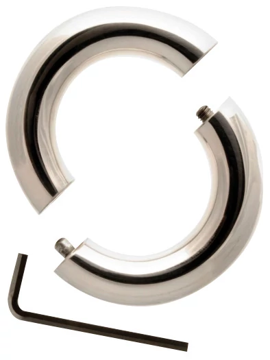 Ce cockring vous offre une érection plus durable et plus puissante tout en améliorant votre bosse et en mettant en valeur l'ensemble de votre paquet. Conçu en deux moitiés, l'anneau s'ouvre et se ferme à l'aide de la clé hexagonale de verrouillage. Avec un poids super lourd et une section transversale ronde profonde de 14 mm, cet anneau est suffisamment confortable pour être porté toute la journée. Fabriqué en acier inoxydable sans nickel et sans danger pour le corps. Dispo en 4 tailles. 37€.